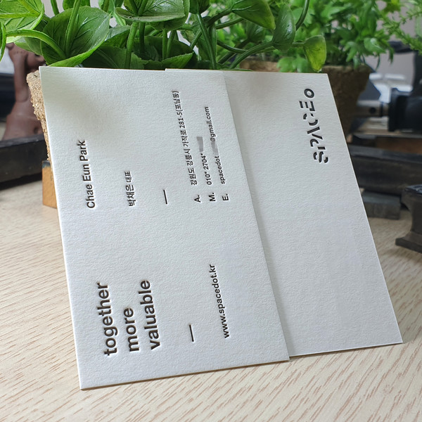 멋스러운 수제종이에 레터프레스를 가미해 한층더 고급스러운