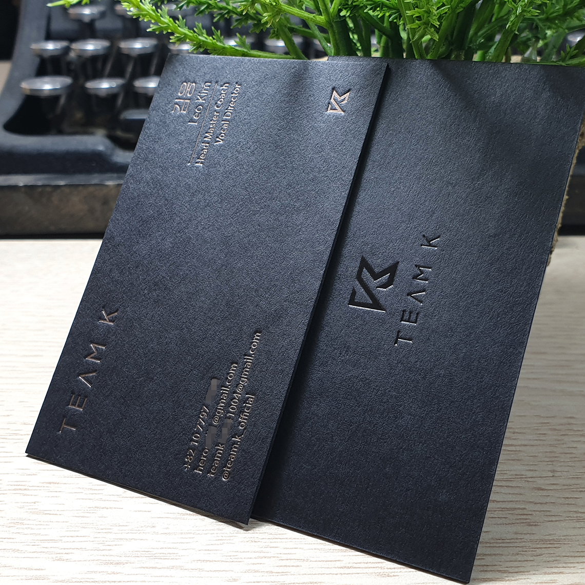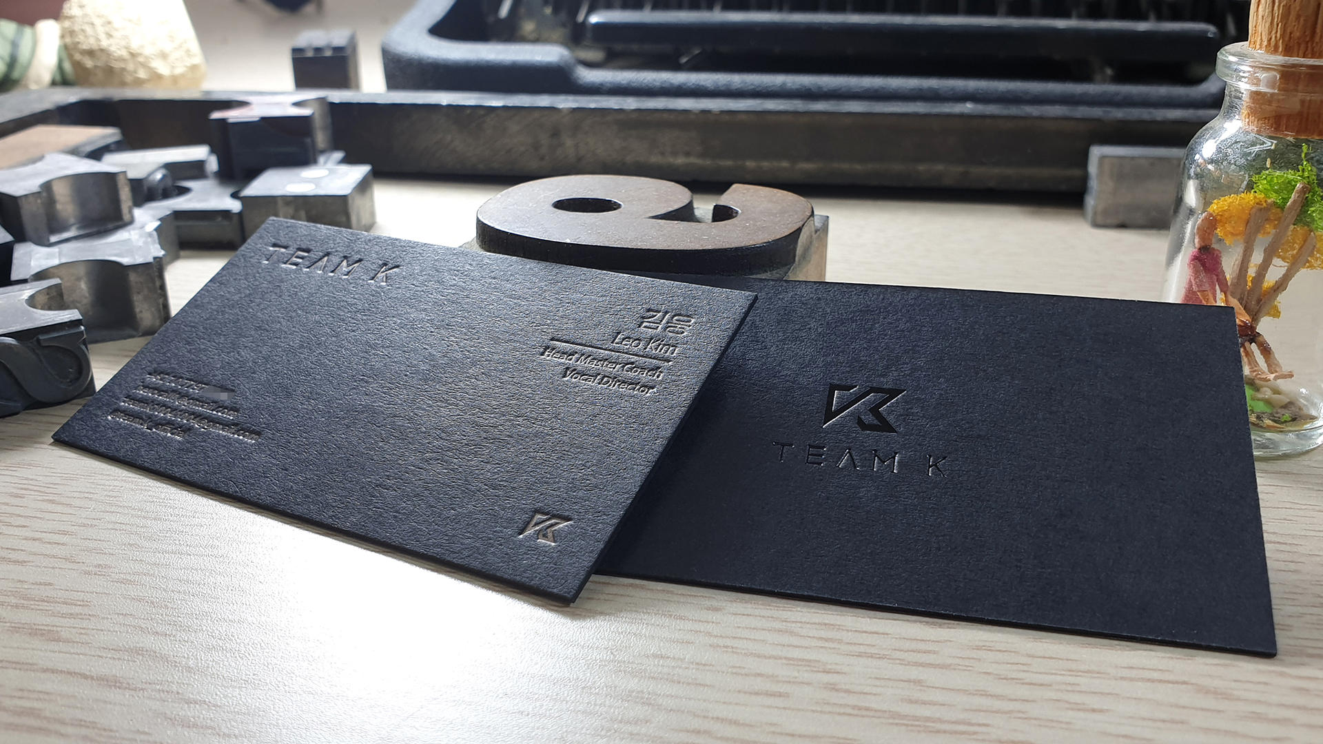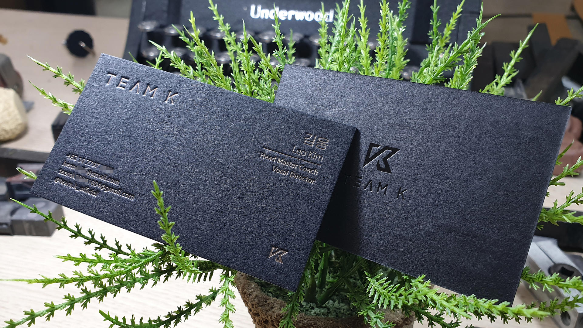 레터프레스 인쇄와 박 가공을 함께 진행한 인쇄나 박가공 후 프레스를 가미한 인쇄 또, 단순히 후가공에 들어가는 박가공인쇄가 아닌 박가공만으로