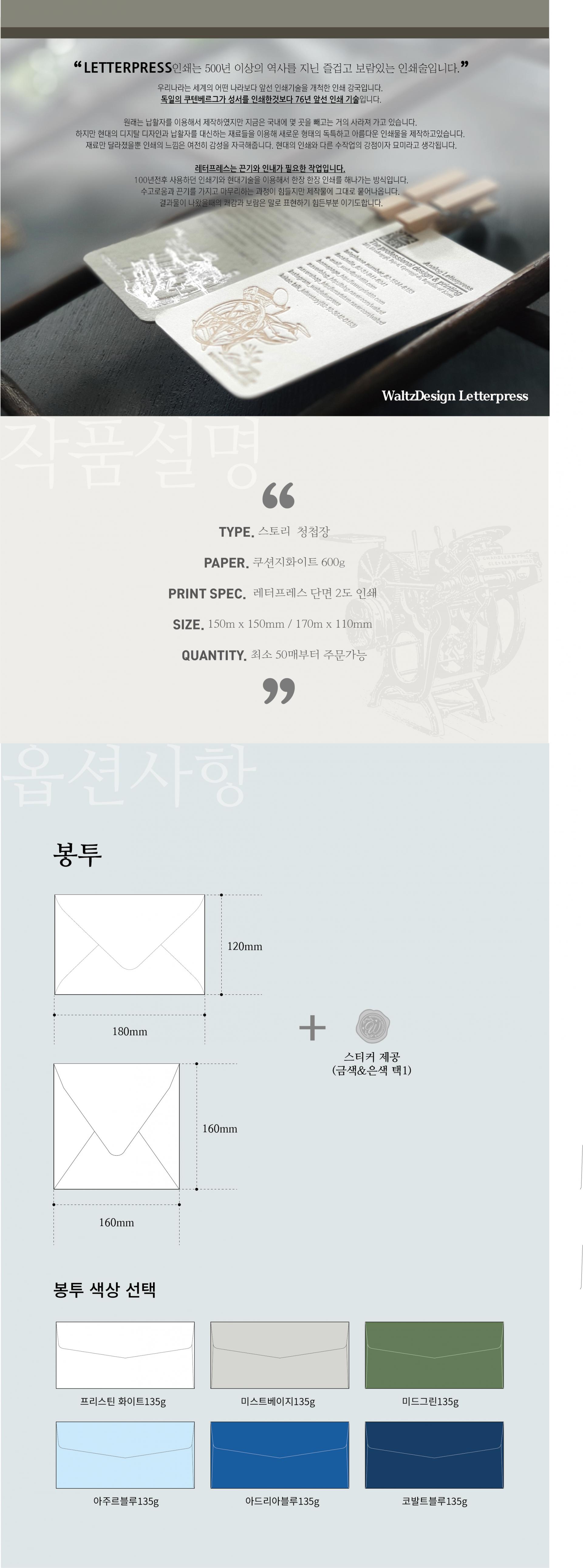 레터프레스 스토리 청첩장 100장
